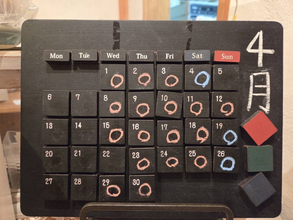 2026年4月の営業カレンダーです。